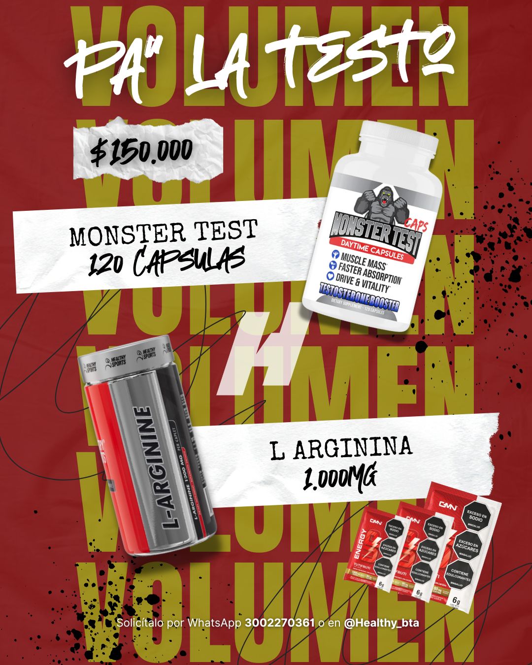 Combo pa la testo Monster Test 120 Cápsulas + L-Arginina 1000 mg